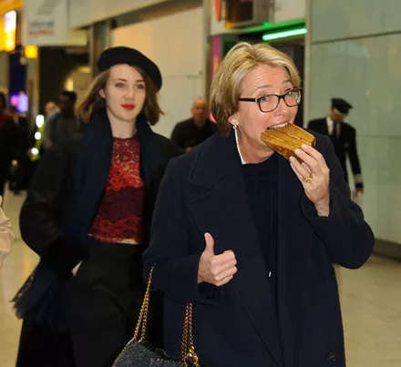 Στο πόδι αναγκάστηκε να φάει ένα cappuccino cake η Emma Thomson. Και φαίνεται πως το απολαμβάνει και το εγκρίνει.