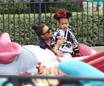 ...Από την άλλη η μικρή North δε φάνηκε και τόσο χαρούμενη στην αγκαλιά της Kim στο τρενάκι του Dumbo