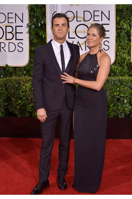 Justin Theroux- Jennifer Anniston: Η Jennifer φοράει Saint Laurent φόρεμα ειδικά φτιαγμένο για εκείνη.