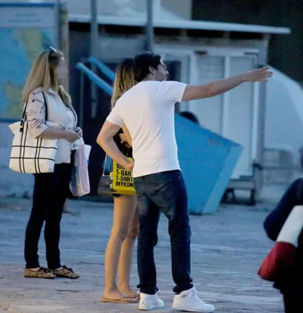 Στα σοκάκια της Μυκόνου τσάκωσε ο φωτογραφικός φακός την Demy με τον ελληνοκαναδό παραγωγό Τέρι Ντούγκα και την αδελφή της Ρώμη Παπαδέα.