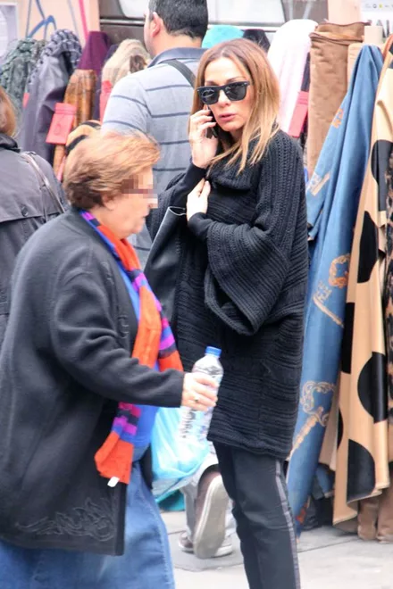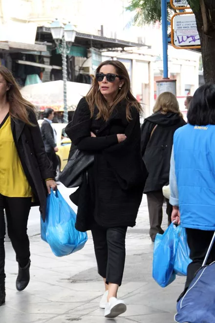 Ο φωτογραφικός φακός, απαθανάτισε την Δέσποινα Βανδή στο κέντρο της Αθήνας και συγκεκριμένα στο Μοναστηράκι να κάνει τη βόλτα της για ψώνια.