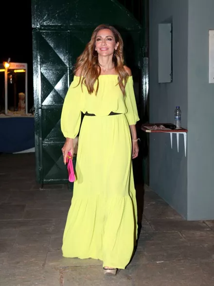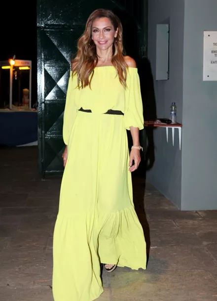 Η τραγουδίστρια φόρεσε ένα αέρινο κίτρινο φόρεμα και μαγνήτισε τα βλέμματα στη μουσική παράσταση του Αλέξανδρου Μπουρδούμη.
