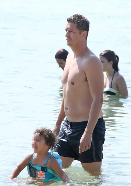 Ο φωτογραφικός φακός τσάκωσε το ζευγάρι να απολαμβάνει τα μπάνια του πριν από μερικές μέρες σε παραλία του πόρτο χέλι μαζί με τη μεγαλύτερη κόρη τους, Νάντια.