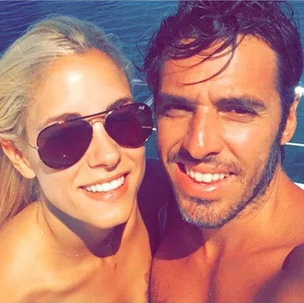 Ποζάροντας στον φωτογραφικό φακό μαζί με τον σύντροφό της