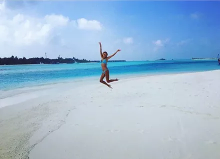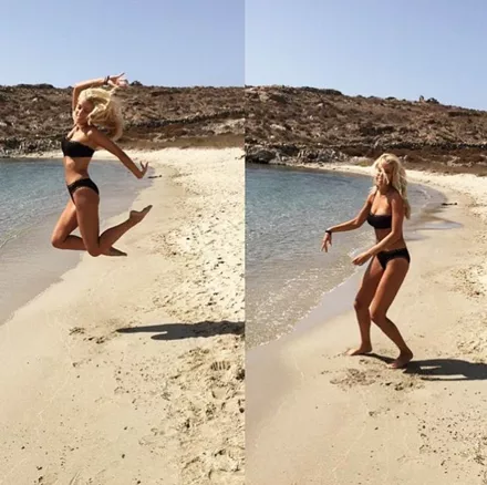 Φωτογραφίζεται με ένα casual look στην παραλία