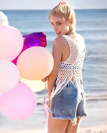 Αθώα σαν παιδί, όπως η ίδια αναφέρει, δίπλα στη θάλασσα, φορώντας ρούχα απο τη δίκη της κολεξιόν