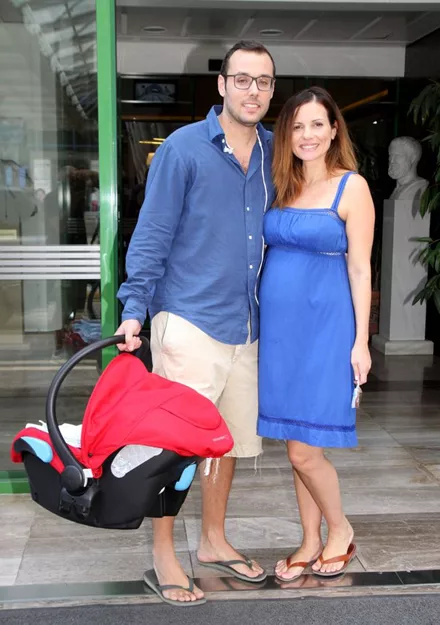 O φωτογραφικός φακός απαθανάτισε τη μαμά, το γιο αλλά και το μπαμπά της οικογένειας, Βασίλη Λιάτσο, κατά την αποχώρησή τους από το μαιευτήριο