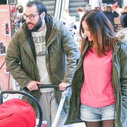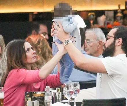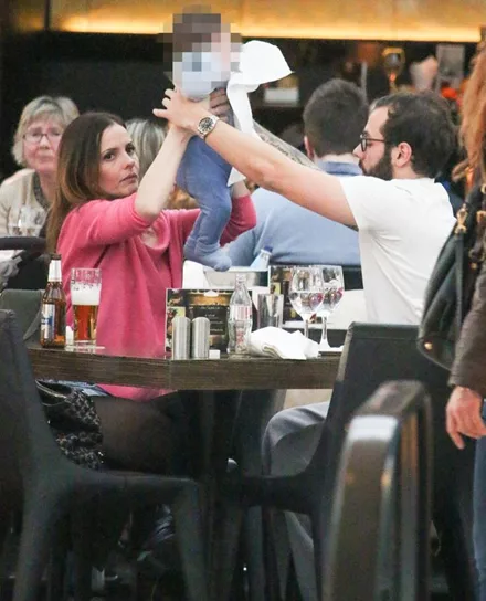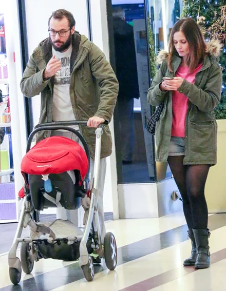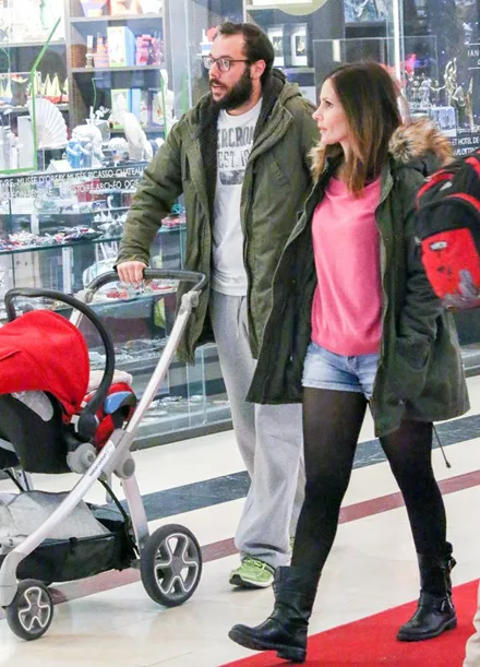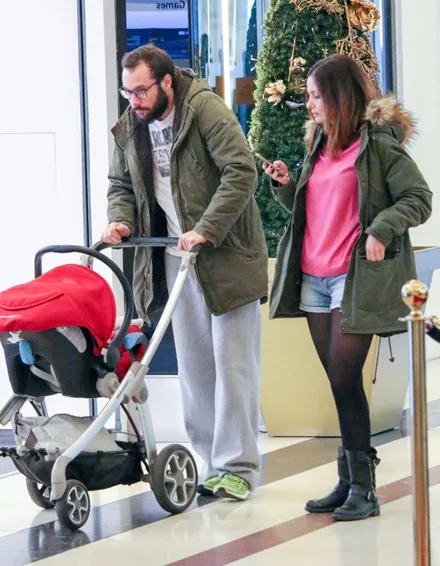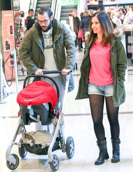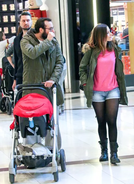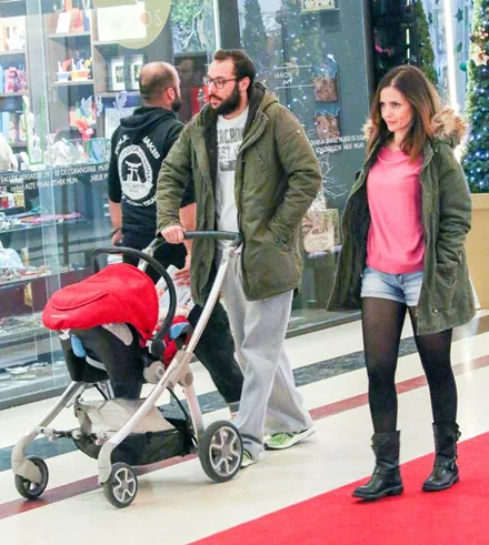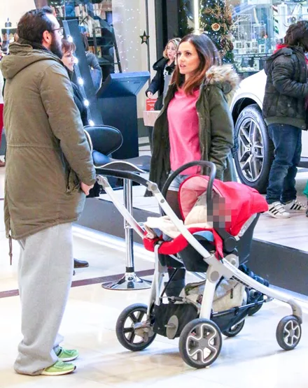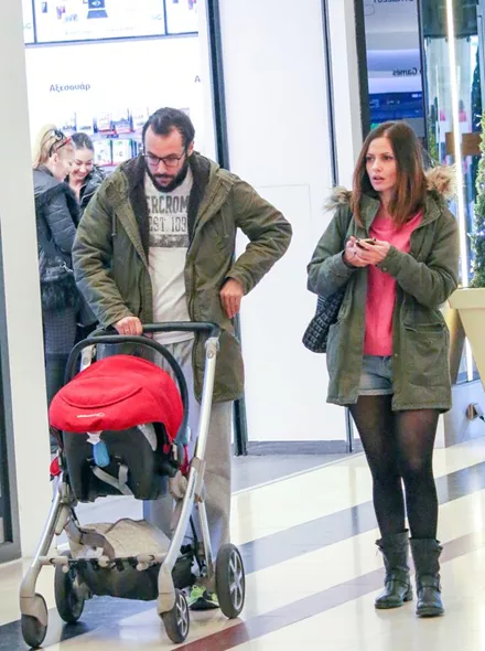 Σε εμπορικό κέντρο των βορείων προαστίων απαθανάτισε ο φωτογραφικός φακός την Ελένη Καρποντίνη μαζί με τον Βασίλη Λιάτσο και τον πέντε μηνών γιο τους.