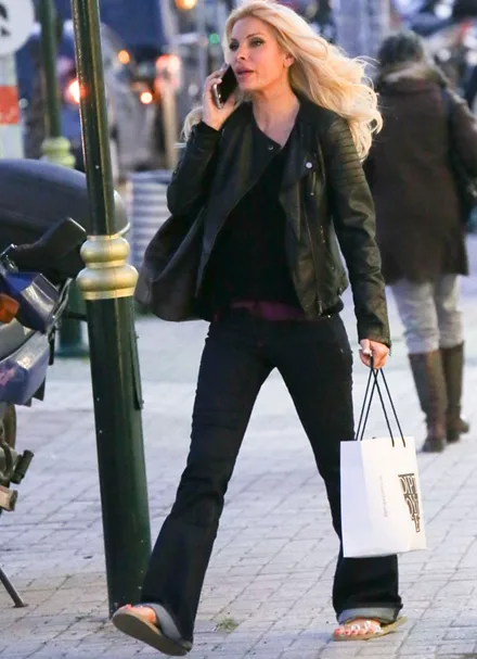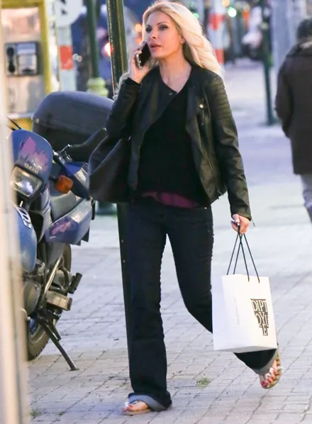 Η παρουσιάστρια του Alpha όπως βλέπουμε και στις φωτογραφίες συνδύασε βόλτα και περιποίηση μιας και ο φωτογραφικός φακός την «τσάκωσε» με τις σαγιονάρες έχοντας τα διαχωριστικά δακτύλων του πεντικιούρ που έκανε.