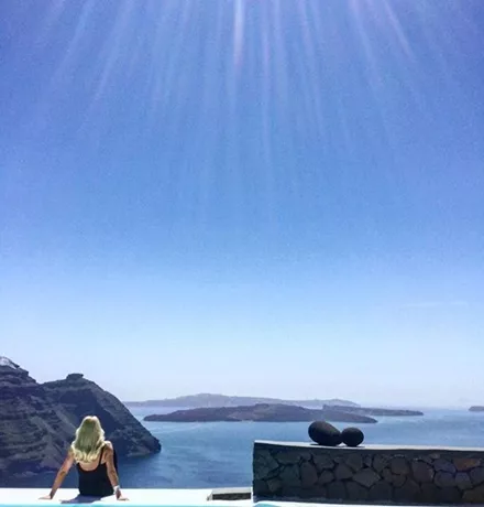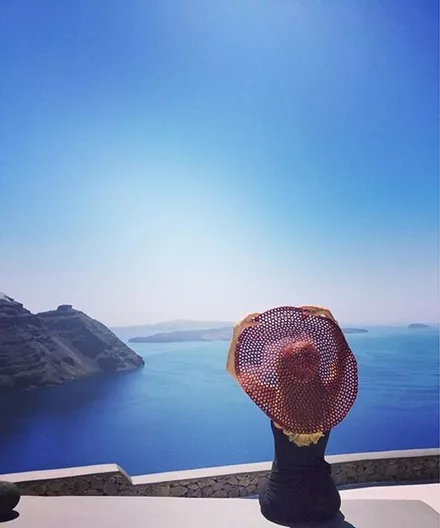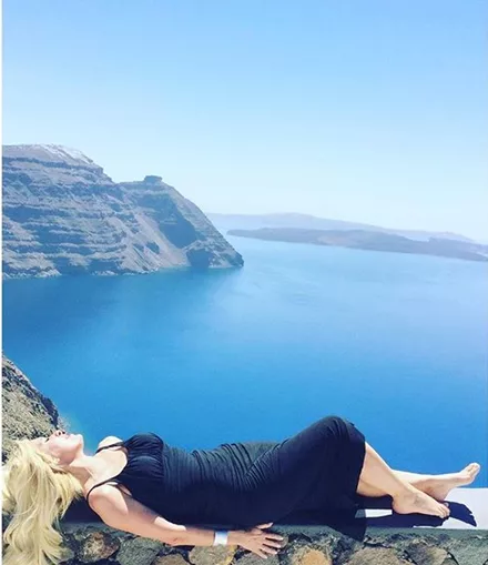 Μετά το πρώτο της μπάνιο της περασμένης εβδομάδας στο ησυχαστήριο της, την Άνδρο, η Ελένη Μενεγάκη αυτή την φορά βρέθηκε στην όμορφη Σαντορίνη.