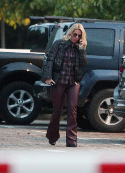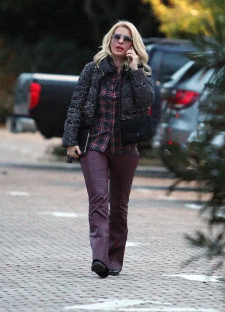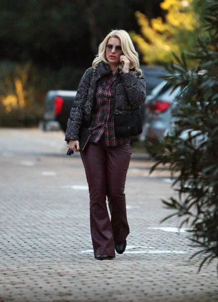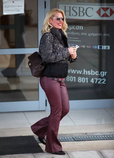 Φανερά ευδιάθετη φορώντας ένα δερμάτινο παντελόνι καμπάνα σε μπορντό χρώμα, η παρουσιάστρια αποχώρησε από το πλατό με προορισμό το σπίτι της.