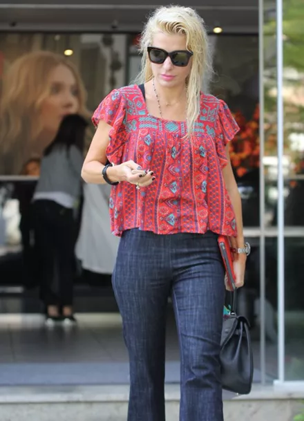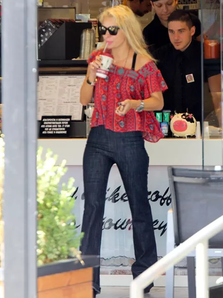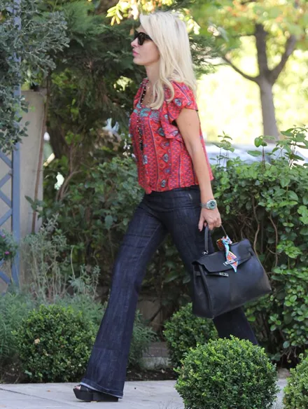 Η παρουσιάστρια του Alpha μάλιστα όπως βλέπετε και στις φωτογραφίες έφυγε από το κομμωτήριό της με βρεγμένα μαλλιά, φορώντας ένα τζιν παντελόνι καμπάνα και κόκκινο τοπ με μοτίβα.