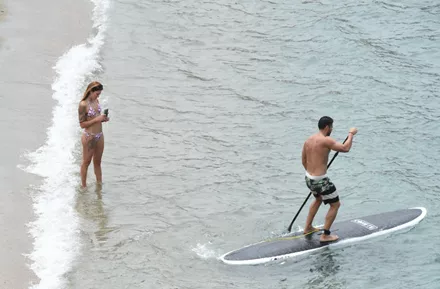 Η Ευρυδίκη Βαλαβάνη και ο Κωνσταντίνος Βασάλος είναι ένα ζευγάρι, το οποίο αγαπάει τη γυμναστική και τα σπορ και δε χάνει ευκαιρία να αθληθεί, όπου και αν βρίσκεται. Έτσι οι δυο τους δεν αρκέστηκαν στο κολύμπι και την ηλιοθεραπεία, αλλά επιχείρησαν να κάνουν θαλάσσια σπορ στις παραλίες της Τήνου. Ο φωτογραφικός φακός απαθανάτησε τον Κωνσταντίνο Βασάλο να κάνει SUP και την Ευρυδίκη Βαλαβάνη να τον βγάζει φωτογραφίες.