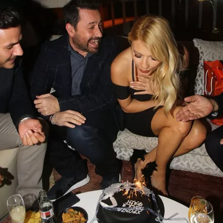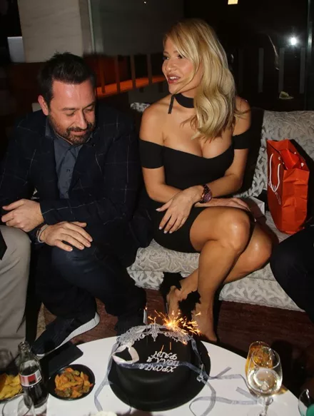 Καθώς επρόκειτο να παρακολουθήσουν όλοι μαζί την πρεμιέρα της ταινίας «50 πιο Σκοτεινές Αποχρώσεις του Γκρι», οι συνεργάτες της Φαίης, της ετοίμασαν μια τούρτα – έκπληξη εμπνευσμένη από την ταινία. Έκπληκτη η Φαίη Σκορδά απόλαυσε τη βραδιά της σβήνοντας και τα κεράκια της.