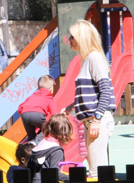 Ο φωτογραφικός φακός αποθανάτισε την παρουσιάστρια με τα παιδιά της και τον ανιψιό της, Μιχάλη Αλεξανδρή, το περασμένο σαββατοκύριακο στην παιδική χαρά στην Βουλιαγμένη να απολαμβάνουν όμορφες στιγμές παιχνιδιού.