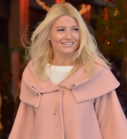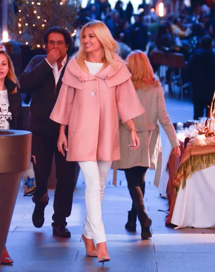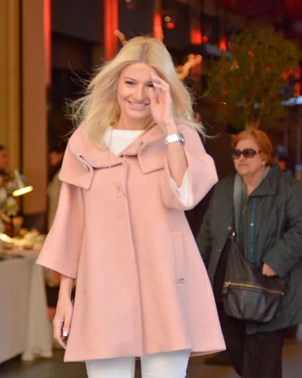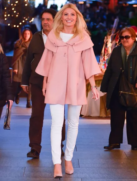 Ο φωτογραφικός φακός αποθανάτισε την παρουσιάστρια, χαμογελαστή, φορώντας ένα λευκό παντελόνι και ροζ παλτό, τα οποία συνδύασε με ένα ζευγάρι γόβες.