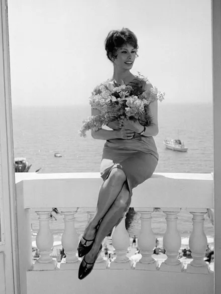 Η Sophia Loren στο μπαλκόνι του θερέτρου της στις Καννες, το 1969.