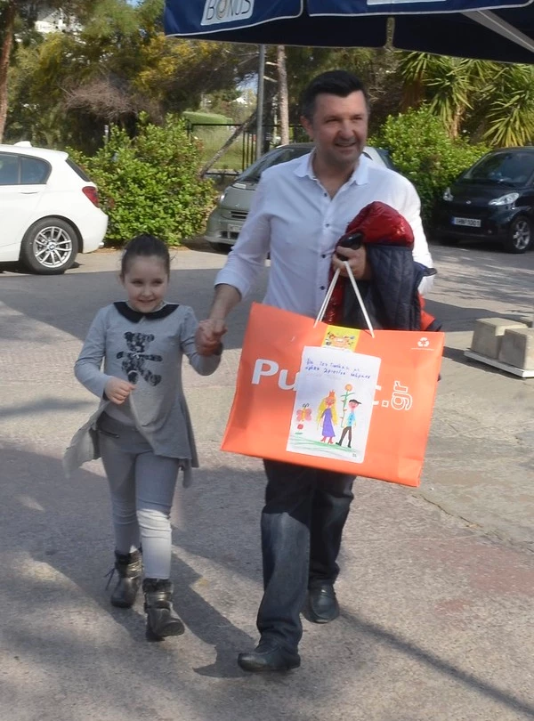 Κρατώντας την μαμά του από το χέρι ενώ η ίδια είχε στην αγκαλιά της και το δεύτερο παιδί της οικογένειας, ο μικρός Γιαννάκης υποδέχτηκε τους καλεσμένους του σε ένα πάρτι που είχε θέμα τα αυτοκινητάκια Cars.