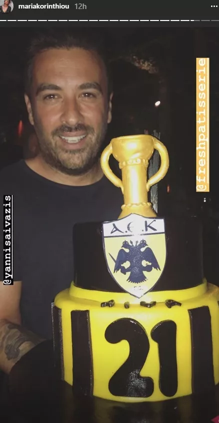 Ο Γιάννης Αϊβάζης έγινε 41 και το γιόρτασε σε γνωστό στέκι της Αθήνας. Η Μαρία Κορινθίου ετοίμασε μια εντυπωσιακή, διώροφη τούρτα με θέμα την αγαπημένη ομάδα του συζύγου της, την ΑΕΚ, και μαζί με καλούς φίλους πέρασαν ένα όμορφο βράδυ.
