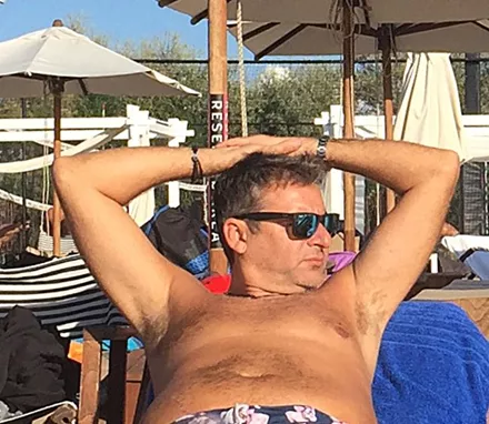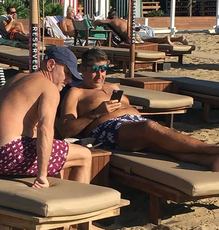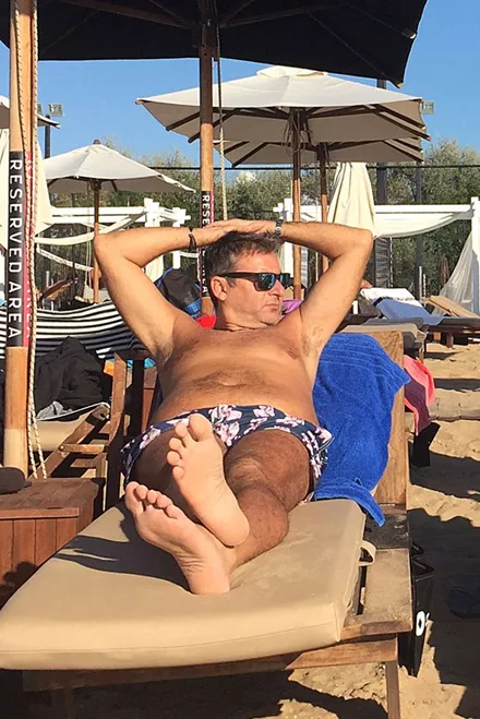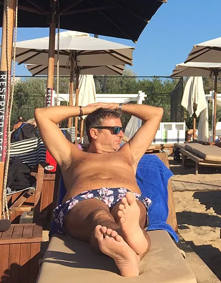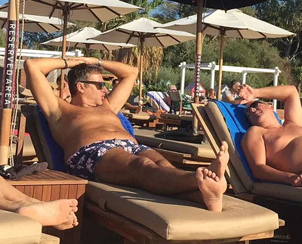 Ο φωτογραφικός φακός απαθανάτισε τον Γιώργο Λιάγκα σε γνωστή παραλία της Βουλιαγμένης να απολαμβάνει τον ήλιο στην ξαπλώστρα του.