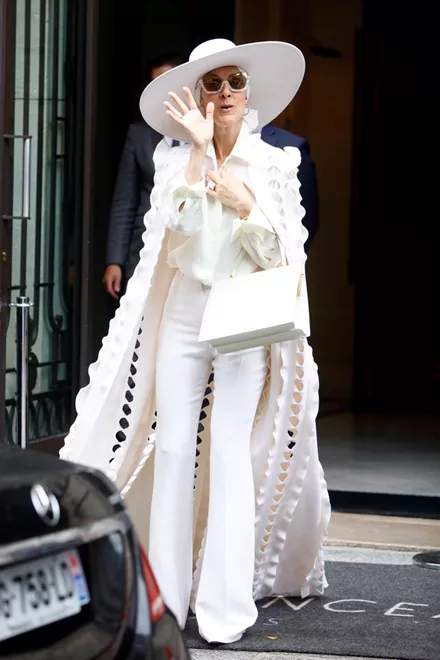 Η 49χρονη σταρ απαθανατίστηκε από τους παπαράτσι να βγαίνει από ξενοδοχείο στο Παρίσι με ένα total white outfit. Το λευκό jumpsuit και η αντίστοιχη κάπα Ralph & Russo συνδυάστηκαν από την ίδια με oversized καπέλο και μεγάλα γυαλιά ηλίου. To outfit της αυτό μάς έφερε στο μυαλό την Lady Gaga και τις τολμηρές και εκκεντρικές εμφανίσεις της.