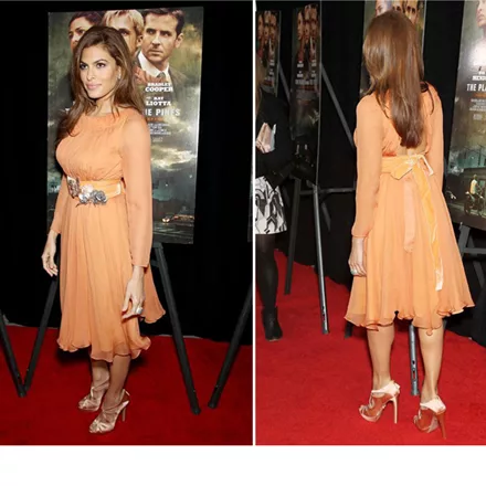Η Eva Mendes επέλεξε να φορέσει ένα Prada φόρεμα το οποίο συνδύασε με παπούτσια του ίδιου οίκου και Lorraine Schwartz κοσμήματα.