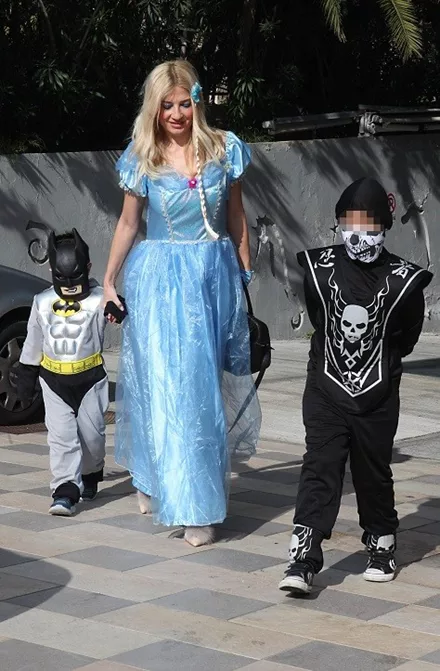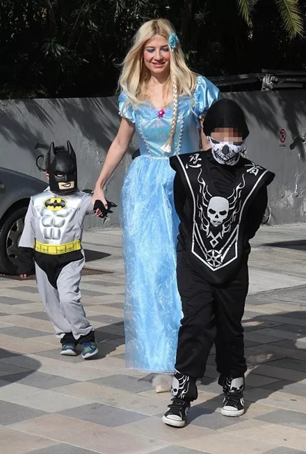 Ο φωτογραφικός φακός, απαθανάτισε λοιπόν την περήφανη μαμά στη Γλυφάδα μαζί με τα παιδιά της, Γιάννη και Δημήτρη Λιάγκα. Οι τρεις τους, πήγαν σε party μασκέ ως «βασίλισσα Έλσα», «Νίντζα» και «Μπάτμαν».
