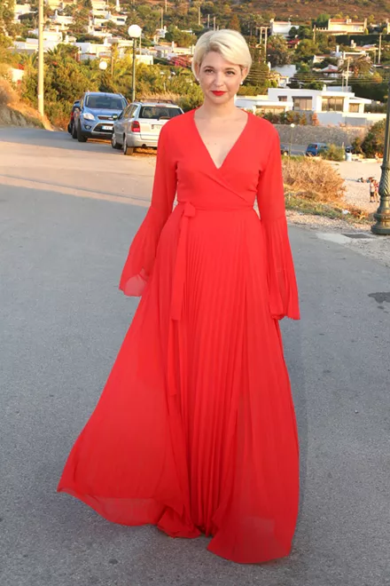 Φόρεσε το μάξι φόρεμά σου ακόμα και αυτές τις ημέρες, διατηρώντας μια «ησυχία» ως προς τα αξεσουάρ και αφήνοντας το έντονο χρώμα να ξεχωρίσει, όπως έκανε η Αναστασία Περράκη.