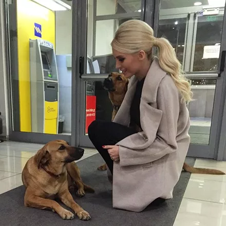Η Κατερίνα Καινούργιου με το σκύλο που συχνάζει πάντα στην είσοδο του Alpha