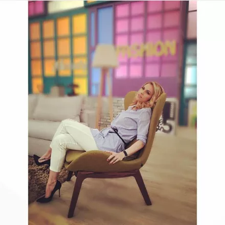 Η Κατερίνα Καινούργιου σε μια φωτογραφία backstage από την εκπομπή «Λόγω Tivis»