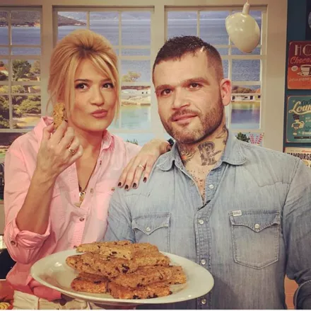 Η Φαίη Σκορδά δοκιμάζει τα φαγητά του Διονύση Αλέρτα σε διάλειμμα της εκπομπής της