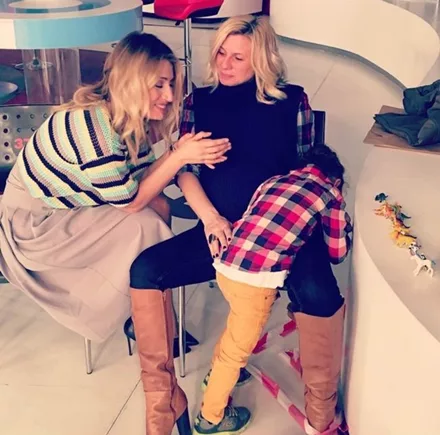 Η Κατερίνα Καραβάτου φωτογραφίζεται με την κόρη της, Αέλια και την καλή της φίλη, Μαρία Ηλιάκη