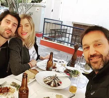 Η Ζέτα Δούκα, τρώει με τον σύντροφό της και έναν φίλο της, λίγο πριν γεννήσει