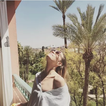 Η Βίκυ Καγιά απολαμβάνει τον ήλιο από το μπαλκόνι του ξενοδοχείου που διαμένει στο Μαρόκο