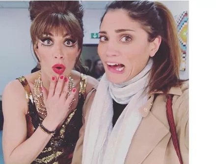 Η Μαίρη Συνατσάκη με την αγαπημένη της φίλη Ντορέττα Παπαδημητρίου, σε backstage φωτογραφία από το μιούζικαλ «Sweet Charity»