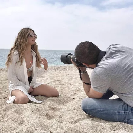 Η Αθηνά Οικονομάκου σε μια backstage φωτογραφία στην παραλία