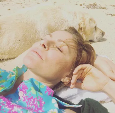 Η Τζένη Μπαλατσινού με το σκύλο της σε μια τρυφερή φωτογραφία