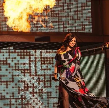 Η Καίτη Γαρμπή φωτογραφίζεται ενώ τραγουδάει στο Madwalk 2016