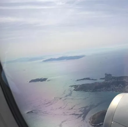 Η Κατερίνα Καραβάτου βγάζει φωτογραφία στο αεροπλάνο προς Θεσσαλονίκη