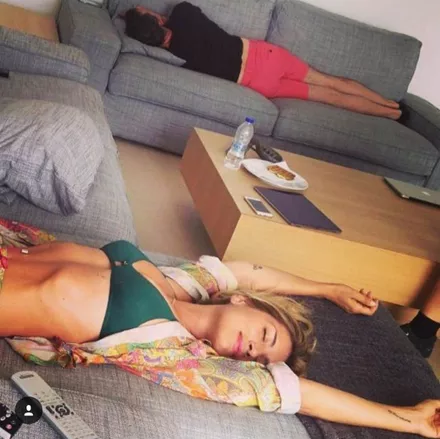 Η Μαρία Ηλιάκη φωτογραφίζεται αποκαμωμένη στον καναπέ