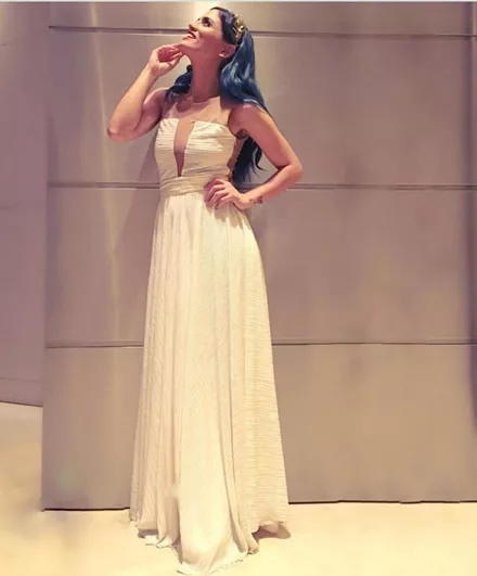 Η Μαίρη Συνατσάκη φωτογραφίζεται με το μαγευτικό της φόρεμα