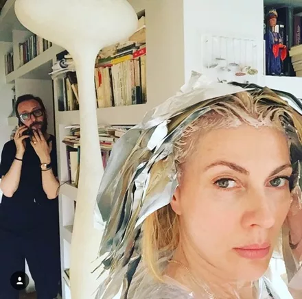 Η selfie της Σμαράγδας Καρύδη από το κομμωτήριο, με τα αλουμινόχαρτα στο κεφάλι