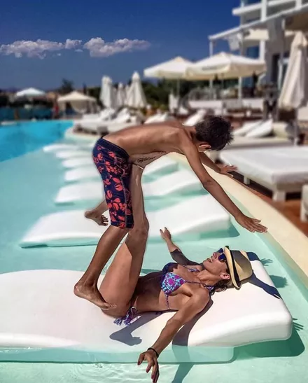 Η Ντορέττα Παπαδημητρίου παίζει με τον γιο της στην ξαπλώστρα