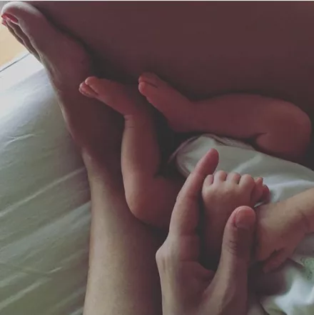 Η Δέσποινα Καμπούρη, φωτογραφίζεται με την προσφάτως γεννημένη κόρη της
