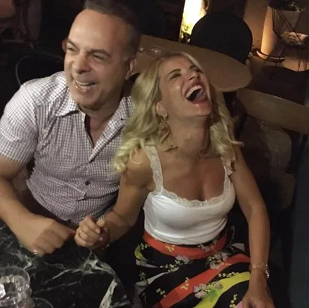 Η Μαρία Μπεκατώρου με τον Φώτη Σεργουλόπουλο σε μια αυθόρμητη φωτογραφία ξεκαρδίζονται στα γέλια