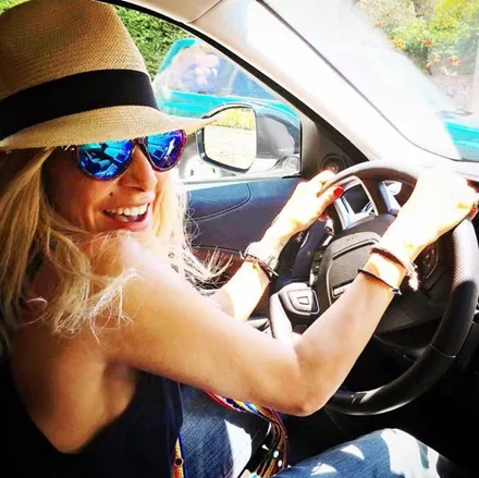 Η Άννα Βίσση σε χαρούμενη διάθεση φωτογραφίζεται στο αμάξι της