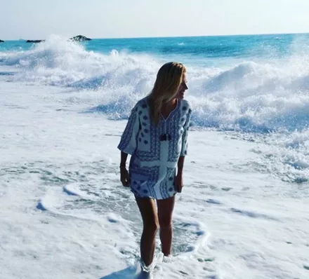 Η Ευαγγελία Αραβανή απολαμβάνει τα κύματα της θάλασσας στη Λευκάδα