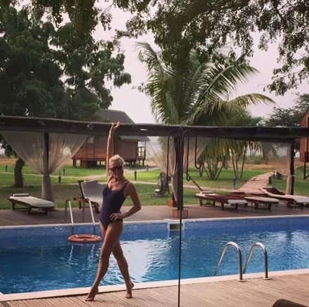 Η Κωνσταντίνα Μιχαήλ φωτογραφίζεται με το μαγιό της σε πισίνα στην Αφρική