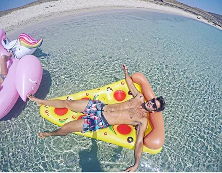 Ο Κώστας Μαρτάκης, απολαμβάνει το φουσκωτό του στη θάλασσα
