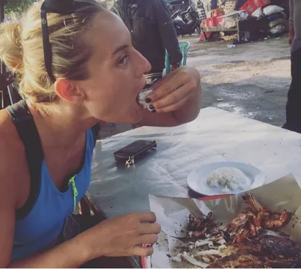 Η Ελεωνόρα Μελέτη απολαμβάνει το φαγητό της με τα χέρια